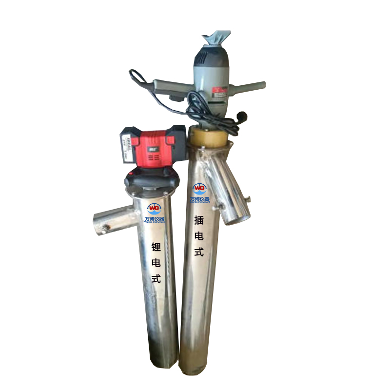 该采样器由锂电池、采样螺旋和采样筒组成。采样时选好采样点,按动电源开关,样品将不断排出。全断面采样将全部样品收集即可,只收集某段样品即可完成某段深度的采样工作。采样完成松开电源开关,取出采样器即可。
