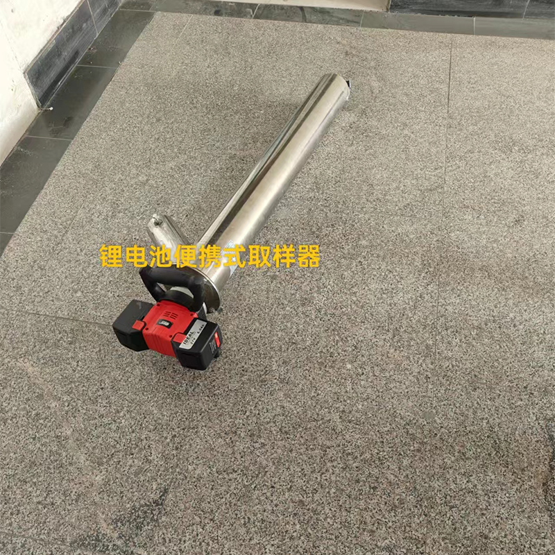 该采样器由锂电池、采样螺旋和采样筒组成。采样时选好采样点,按动电源开关,样品将不断排出。全断面采样将全部样品收集即可,只收集某段样品即可完成某段深度的采样工作。采样完成松开电源开关,取出采样器即可。